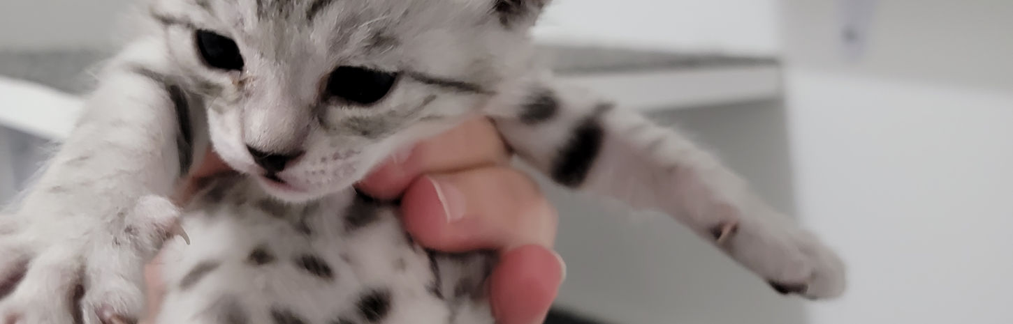Savannah femelle Silver F7 SBT. Maman; Loveourspots Élektra. Papa: Loveourspots Gandalf
